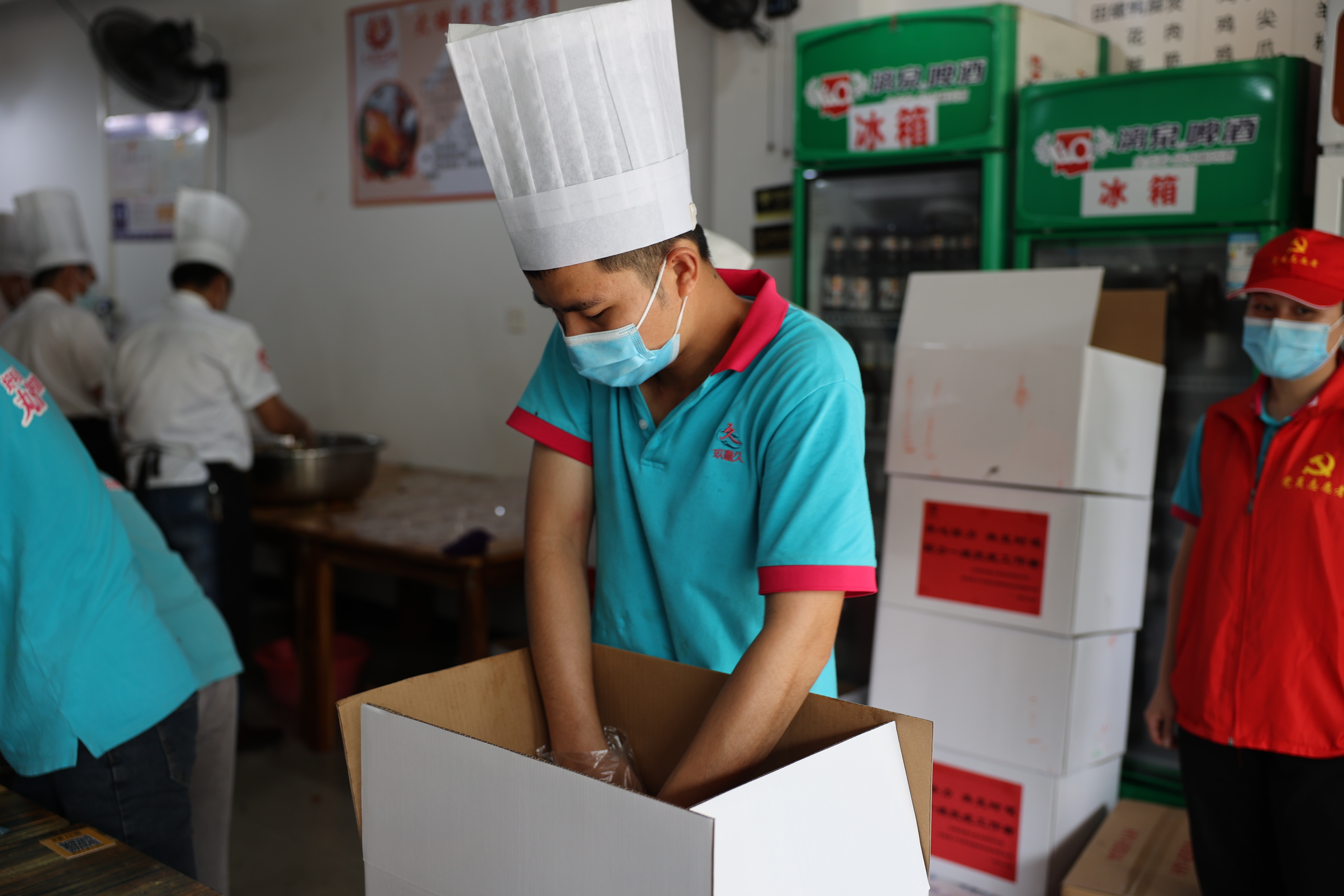 疫病無情人有情,愛心傳遞共抗疫。「玖嘉久」攜手北海庖丁專廚互聯(lián)網(wǎng)科技有限公司,發(fā)揮各自產(chǎn)品和名廚團(tuán)隊優(yōu)勢,為抗疫一線的醫(yī)護(hù)人員和志愿者量身定制健康營養(yǎng)菜單食譜。從前期的餐具采購,食材搭配,到現(xiàn)場備菜,切菜,炒菜,打包等,兩個團(tuán)隊都緊密配合,有條不紊,幾小時趕制了上千份營養(yǎng)套餐盒飯,為在前線工作的醫(yī)護(hù)人員和志愿者提供健康飲食保障。