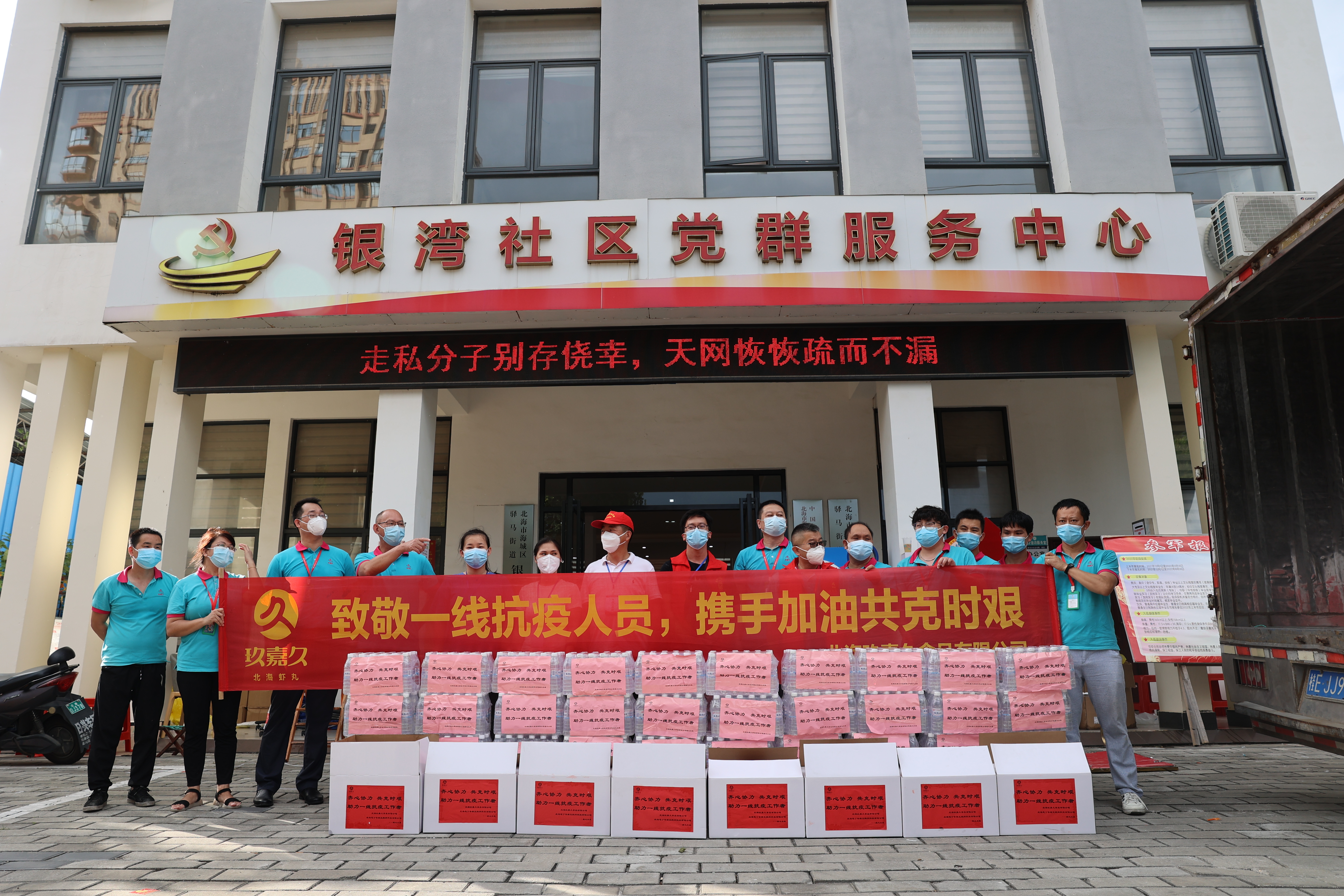 一萬多名醫(yī)護(hù)人員從廣西各地奔赴一線支援北海,各行各業(yè)的志愿者們也紛紛投入到這場抗疫之中。作為廣西區(qū)和北海市的龍頭企業(yè)之一,「玖嘉久」也同樣當(dāng)仁不讓,沖在了抗疫第一線。