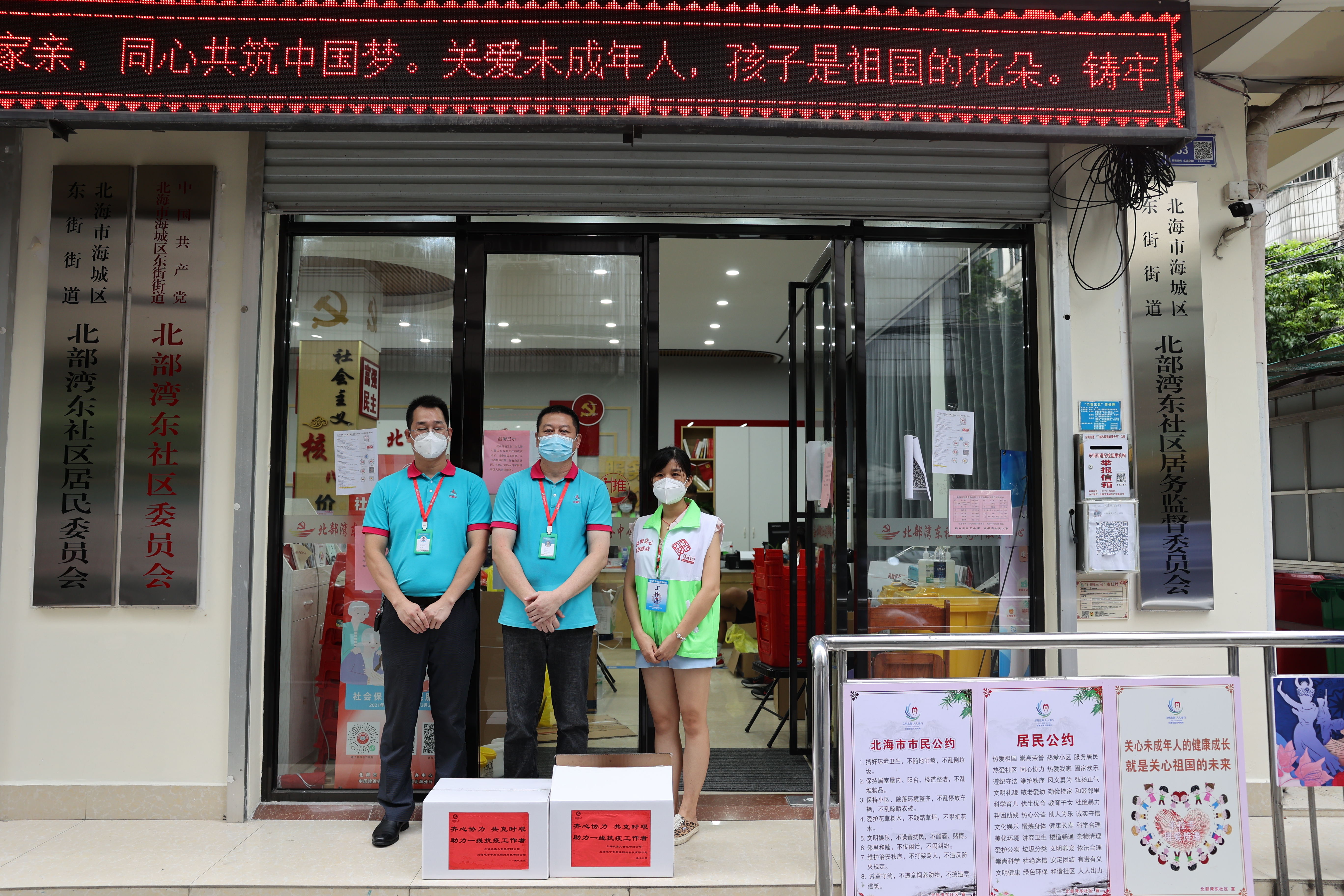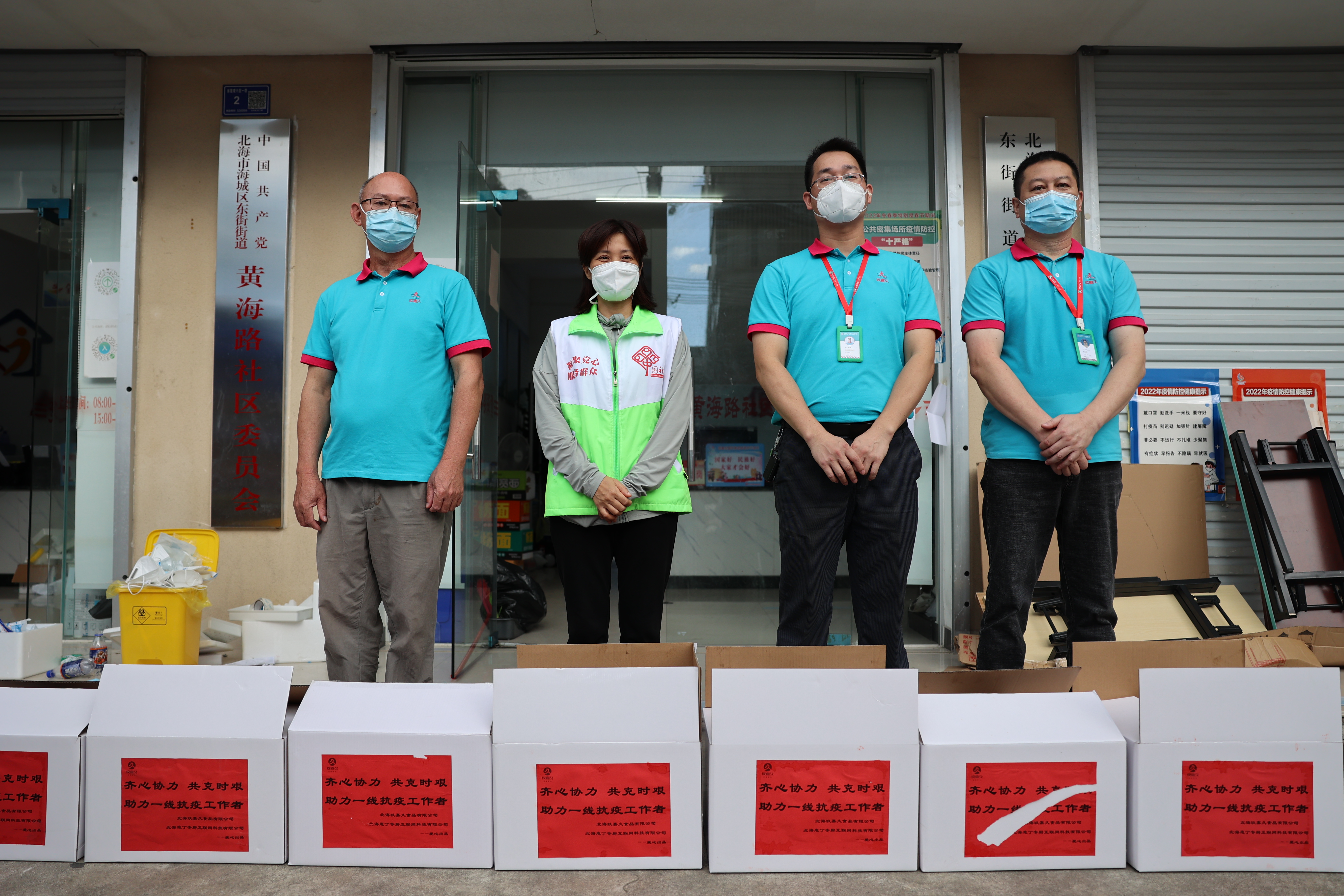 七月北海,烈日當(dāng)空,酷暑難耐,炎熱天氣對一線醫(yī)護(hù)人員和志愿者是一項嚴(yán)酷的挑戰(zhàn),據(jù)悉許多社區(qū)工作人員都累到暈厥?!妇良尉谩箍挂邔m椥〗M迅速采取行動,從7月19日至今,已組織人員提供了近萬個降溫冰袋、數(shù)百箱礦泉水、以及大量帳篷和太陽傘等防暑降溫物資,囑咐奮戰(zhàn)在一線的抗疫人員在做好抗疫工作同時,也要注意自身健康安全,預(yù)防中暑。