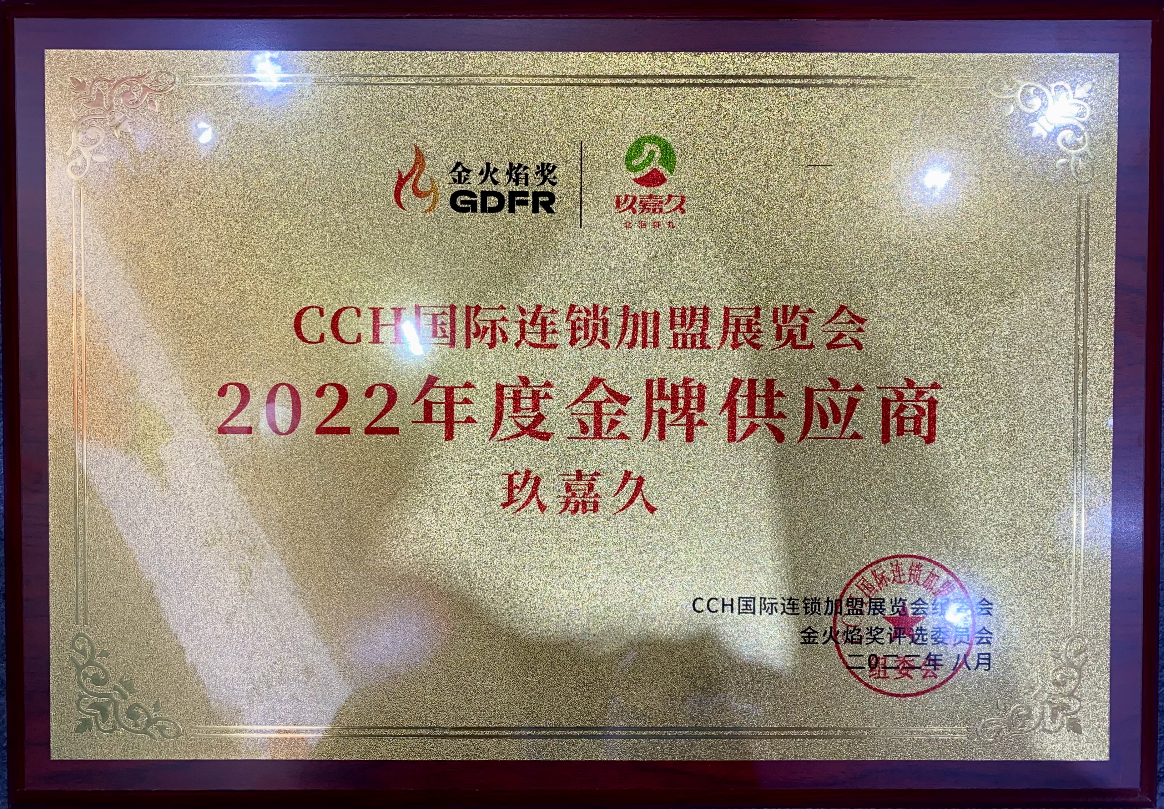 在8月26日的CCH餐飲連鎖加盟展會現(xiàn)場,玖嘉久再度獲得官方頒發(fā)的【金火焰獎金牌供應(yīng)商】。每一個獎項(xiàng)的背后都離不開玖嘉久人的努力,從優(yōu)質(zhì)產(chǎn)品到提供一站式服務(wù),從前線的業(yè)務(wù)人員到后端的研發(fā)人員,每一位員工的努力都建立起了玖嘉久的好口碑。