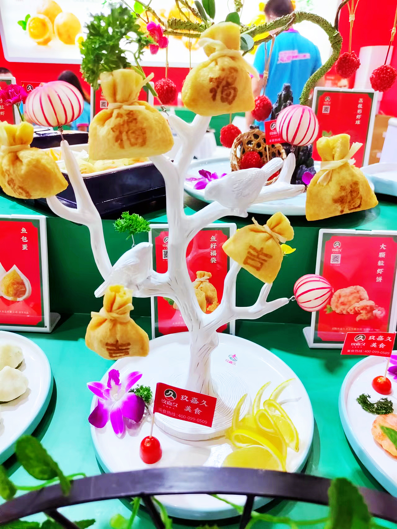 擁有外觀設(shè)計(jì)專利并由PICC承保的玖嘉久福袋,再次亮相展會現(xiàn)場。精致的擺盤以及獨(dú)特的烙字工藝一下子吸引了一群拍照打卡的觀眾,大家在試吃后紛紛表達(dá)了對福袋產(chǎn)品的肯定。